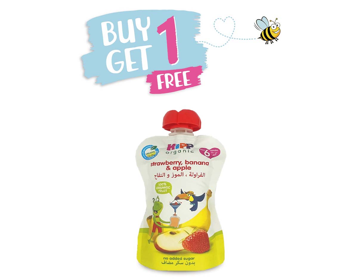 Hipp Organic Apple Strawberry & Banana Puree 100g, Gluten Free, No added Sugar, Buy 1 Get 1 Free