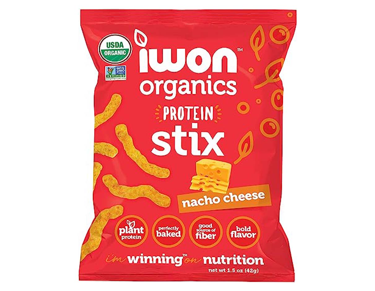 Organic Protein Blend (Green Peas*, Brown Rice Flour*, Navy Beans*, Brown Rice Protein*), Sunflower Oil* and/or Safflower Oil*, and Nacho Cheese Seasoning* (Cheddar Cheese* [(Milk*, Cultures, Salt, Enzymes), Disodium Phosphate], Sea Salt, Tapioca Solids* , Maltodextrin*, Onion Powder*, Garlic Powder* , Paprika*, Buttermilk*, Whey* , Tomato Powder* , Organic Flavor, Yeast Extract, Annatto Extract*, Spices*, Lactic Acid, Citric Acid, Skim Milk*, Natural Flavor). Contains: MILK.