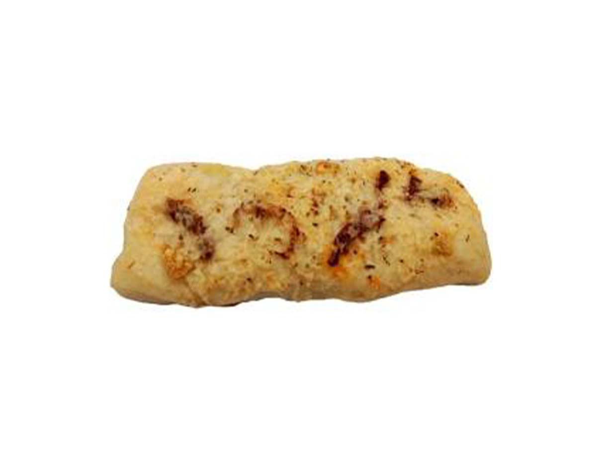 Sundried tomatoes, wheat flour, wheat gluten, yeast improver, salt, water, parmesan cheese, oregano & garlic.