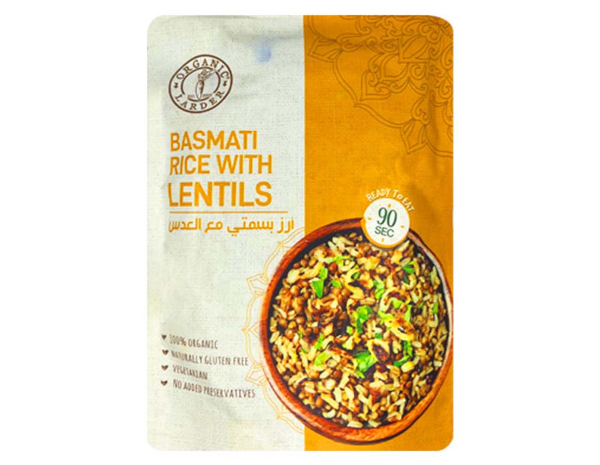 Organic basmati rice, onion, brown lentil, moong dal, sunflower oil, mustard seed, ginger, cumin seed, blend spice & salt.