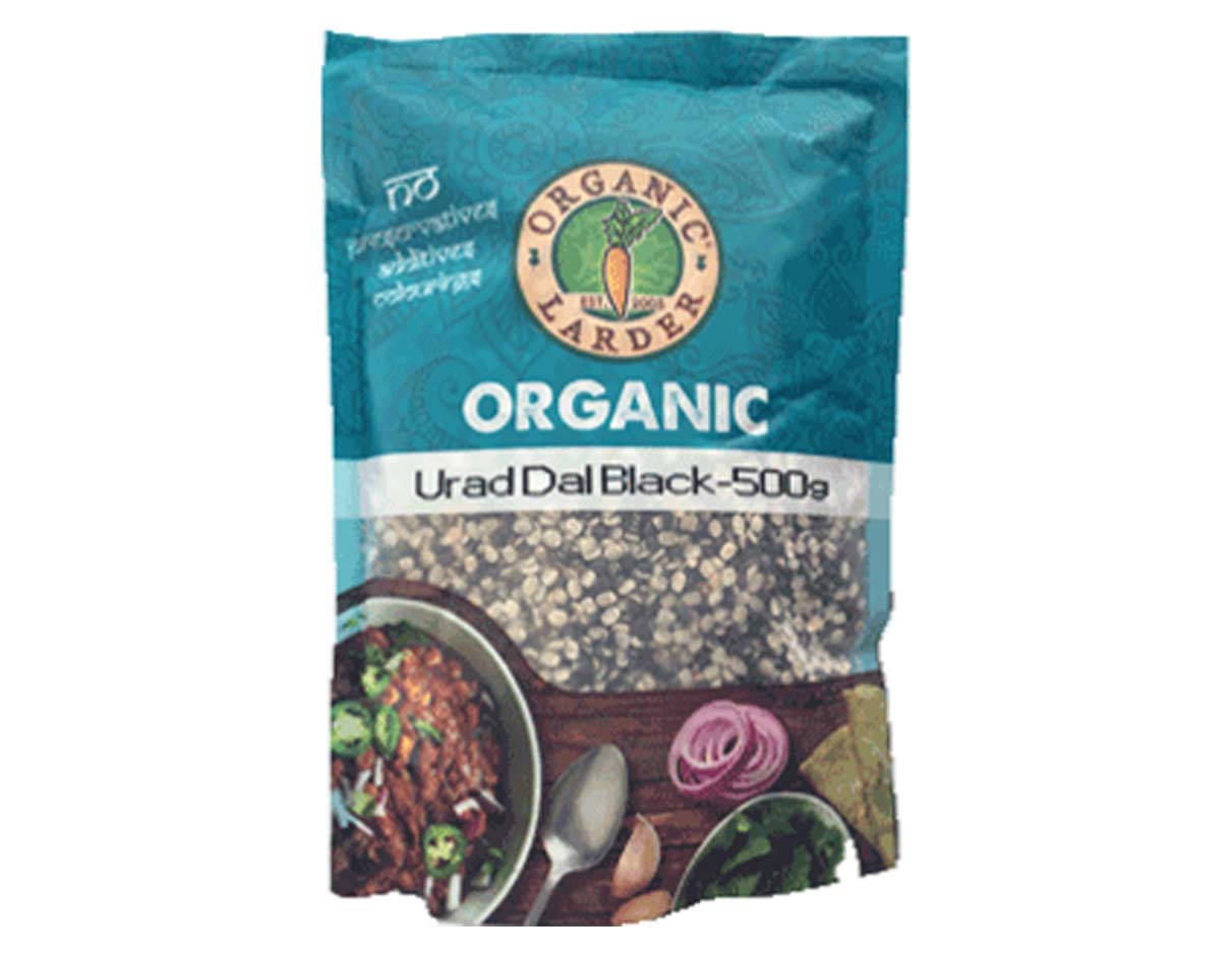 Organic Larder Urad Dal Black - 100percent Organic product. Rich in taste and flavour and nutition. Helps lower cholesterol. Rich in antioxidants. Make your cooking with it and serve hot with Rice, Chapati, Rotis.