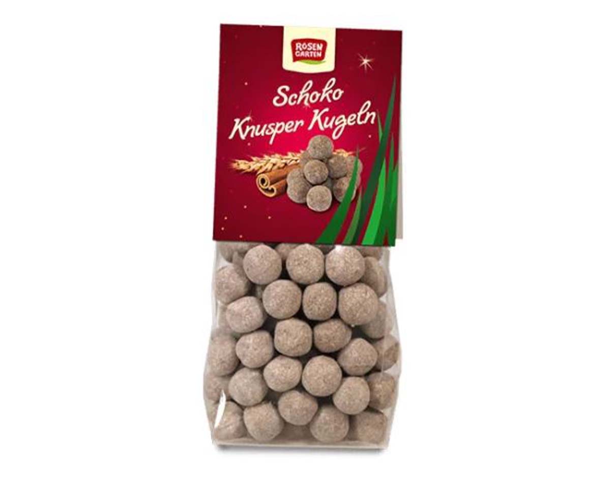 Rosengarten Organic Chocolate Crunchy Balls. Delicious spelt crunchy balls coated in cinnamon milk chocolate. The cereal balls are made from whole grain spelt and corn flour. Enjoy this Christmas treat with the whole family.